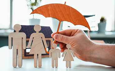 Male insurance agent hold hands gesture shield
