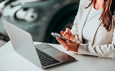 Business woman working on a laptop at the office of car showroom